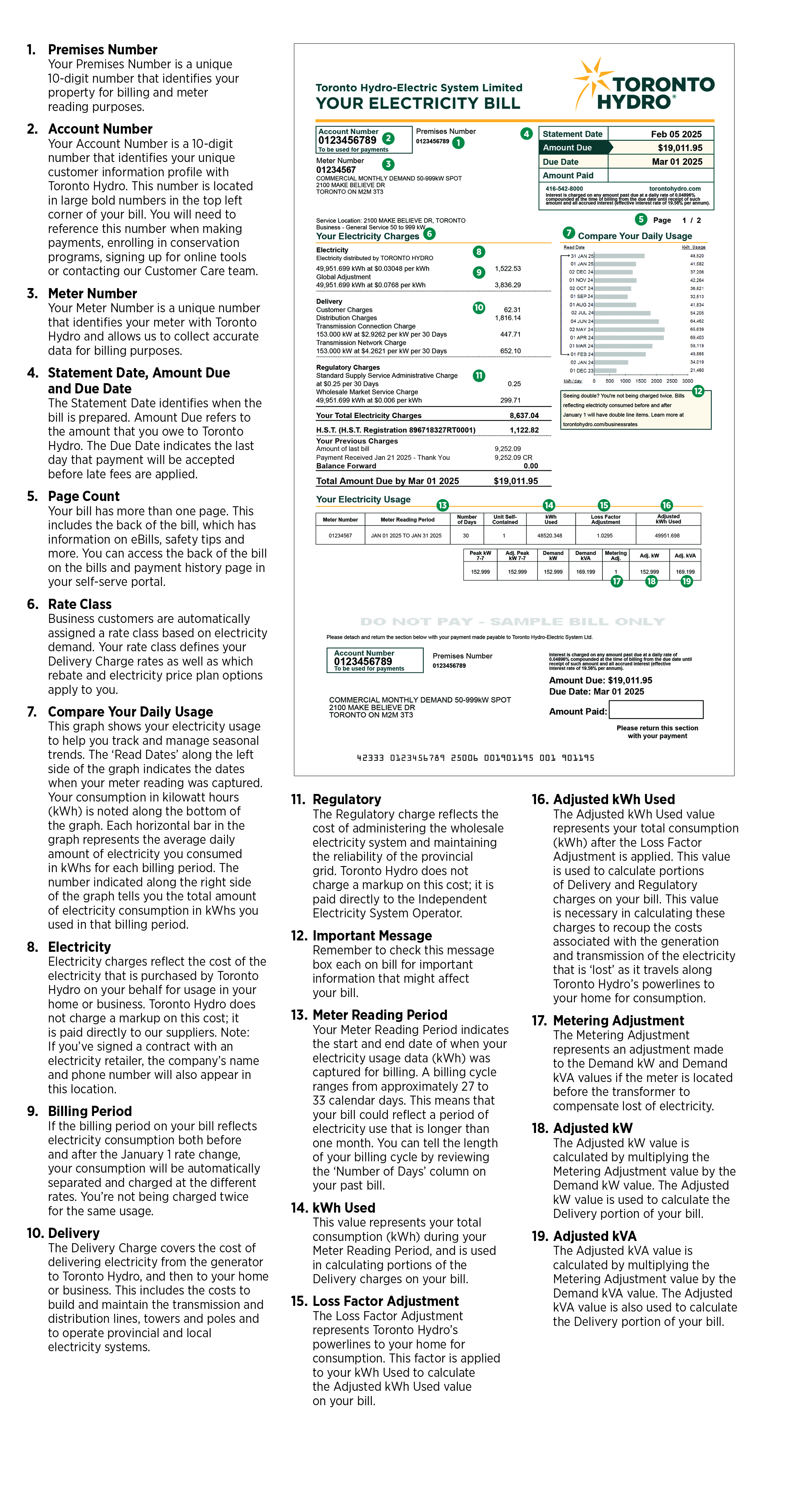 - The statement date identifies when the bill is prepared. Amount due refers to the amount that you owe to Toronto Hydro. The due date indicates the last day that payment will be accepted before late fees are applied.