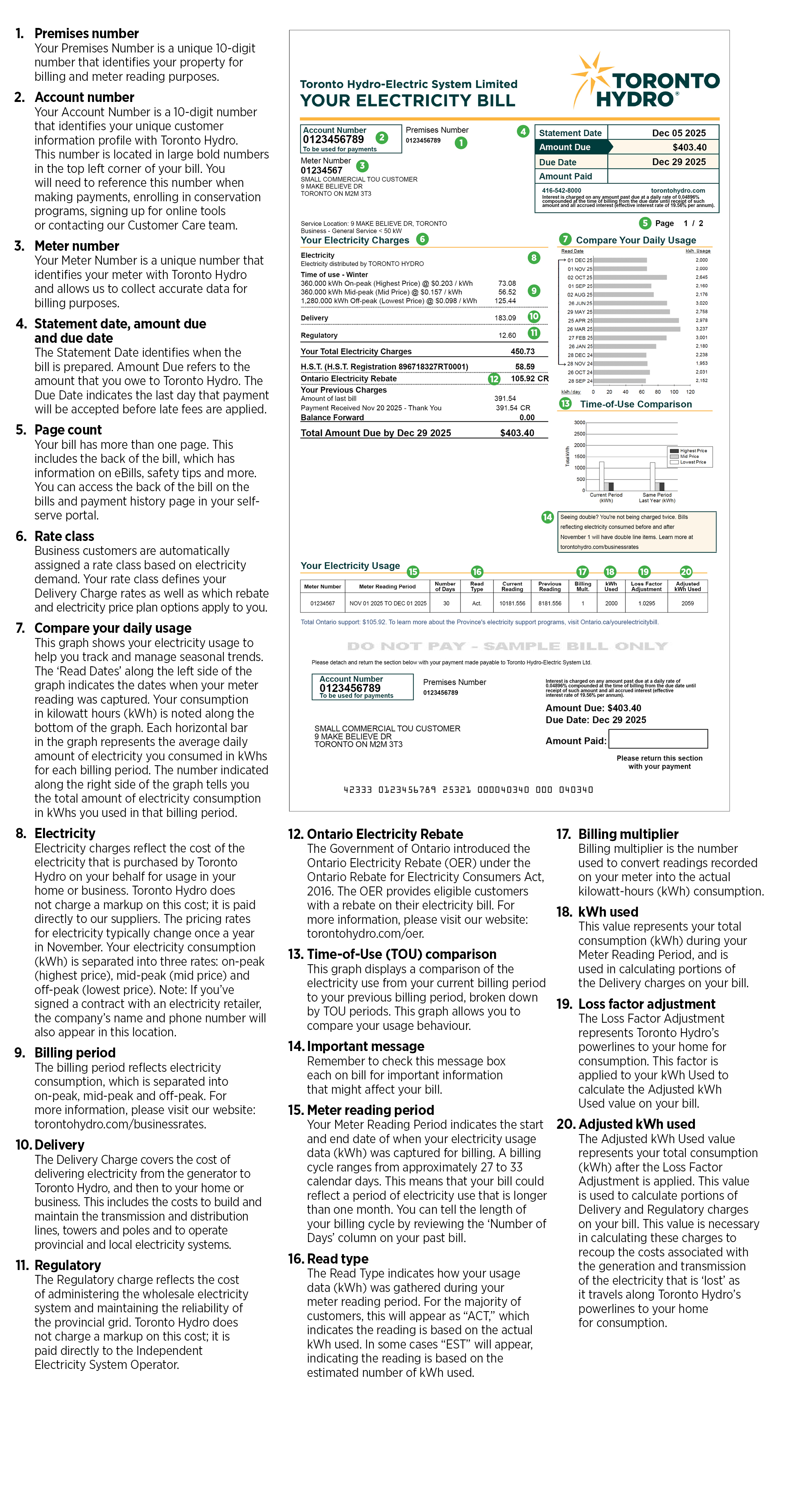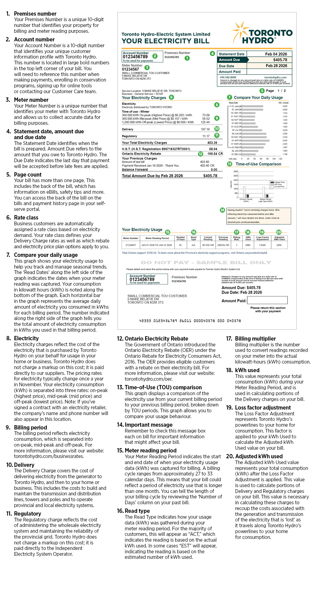 - The statement date identifies when the bill is prepared. Amount due refers to the amount that you owe to Toronto Hydro. The due date indicates the last day that payment will be accepted before late fees are applied.